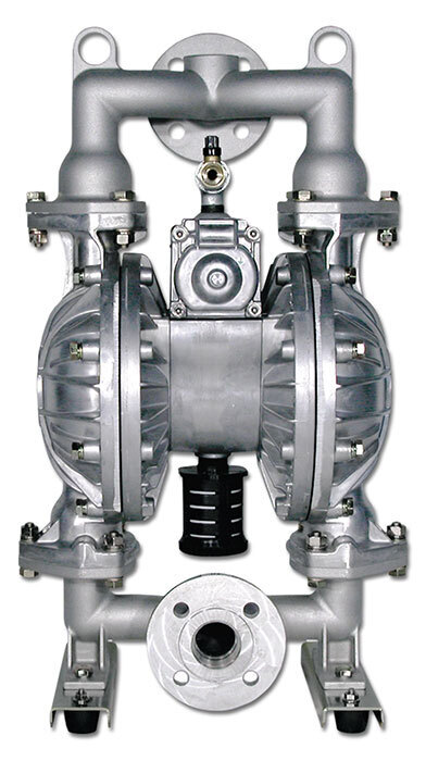 1-1/2" Fluid Port Yamada® NDP-40 series AODD pumps available in aluminum, stainless steel (316), Kynar® (PVDF), groundable acetal, and polypropylene construction and provide a maximum flow rate of 107 gallons per minute